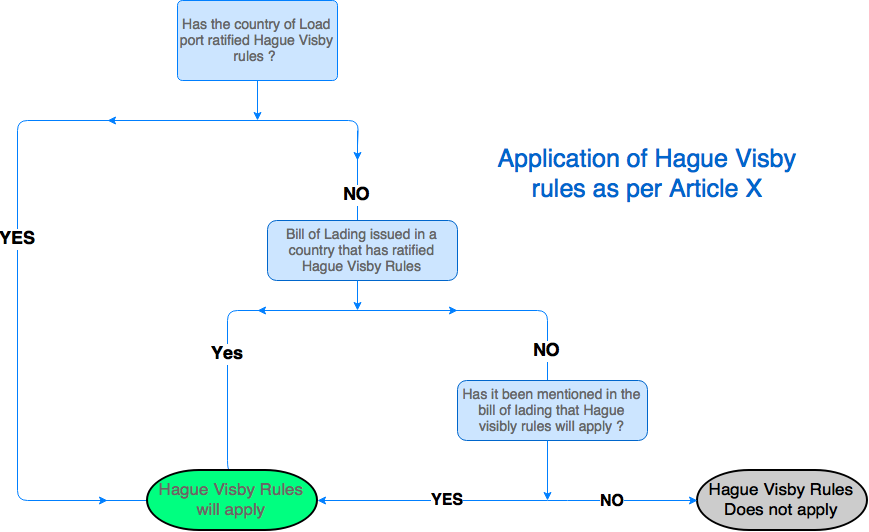 i been using ur all blogs as a informative material and as well as simplified version for all topic which was not so clear and easy with the book......many thanx to u sir, heartly blessing fr ur fab job sir. i am little confused or u can say, i need u to correct me, i one of ur blog where u have post a chart showing difference between Hague and H-V rule states "Cargo is loaded from non-contracting state even it is to be discharged in contarcting state " Hague-Visby is applicale WHEREAS, in this blog at last when u give example of Bangladesh which not ratified H-V rule and it is a loading port but London is ratified H-V, you said H-V is not applicale. this seems to be contardictory. plz explain and correct me on this post or on my mail.
