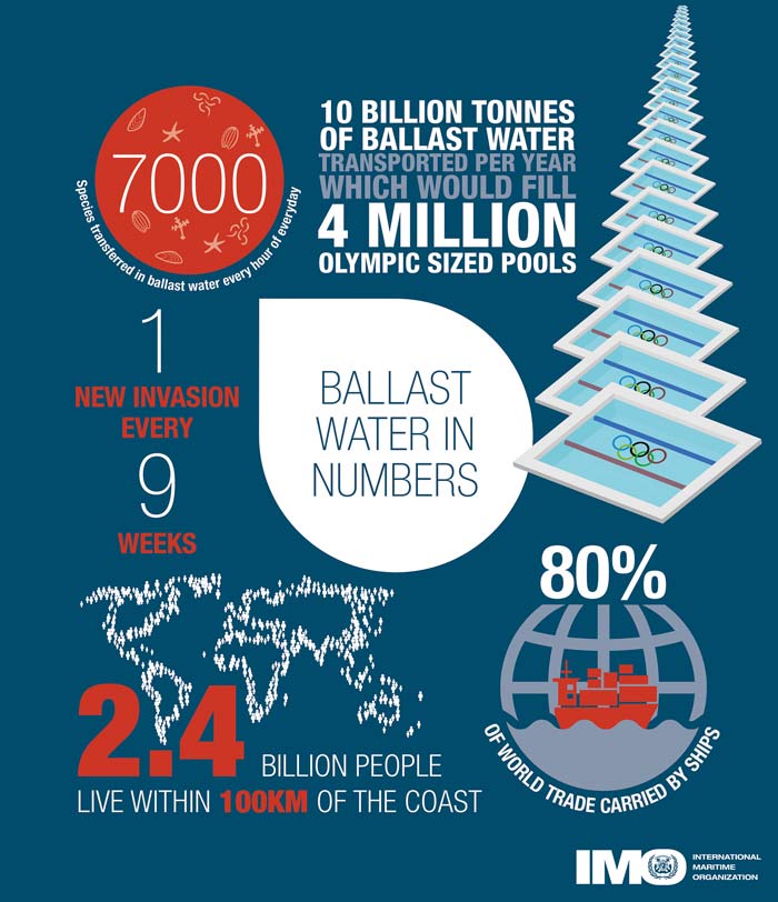 Ballast water convention: Various studies found that when ballast water is a dangerous source of the relocation of many organisms in water. If suitable conditions exist in this release environment, these species will survive and reproduce and become invasive species.