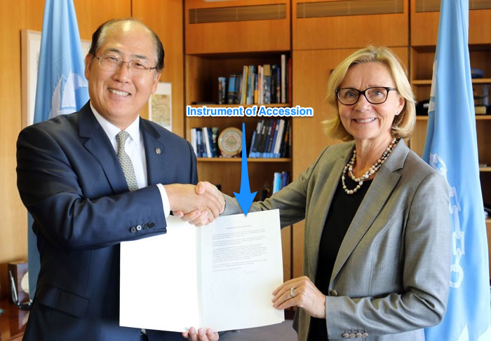 A member state is considered to have become the party to the convention when it deposits the “instrument of accession” to the depository of the convention.